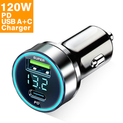 מטען OEM USB לרכב טעינה מהירה סוג C PD 20W לאייפון USB 66W 120W LED תצוגה דיגיטלית לרכב מטען טלפון נייד