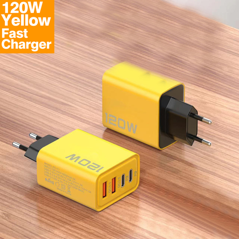 מטען צהוב 120w usb-c 4 יציאה מהירה מטען קיר USB סוג C מודול נייד pd מהיר USB מטען חרק 100w עבור iPhone 15 14